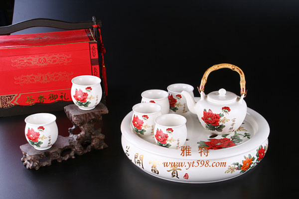 | 產(chǎn)品名稱:花開寶貴玉脂瓷茶壽如意壺杯組 |