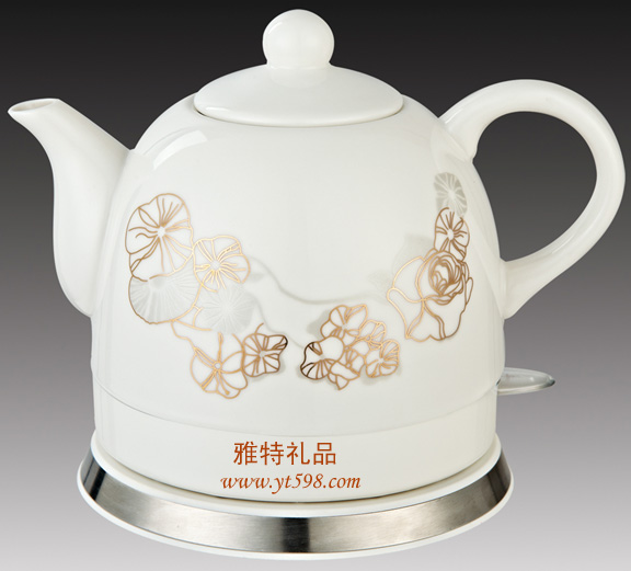 | 產(chǎn)品名稱:陶瓷電熱水壺(金邊荷葉) |