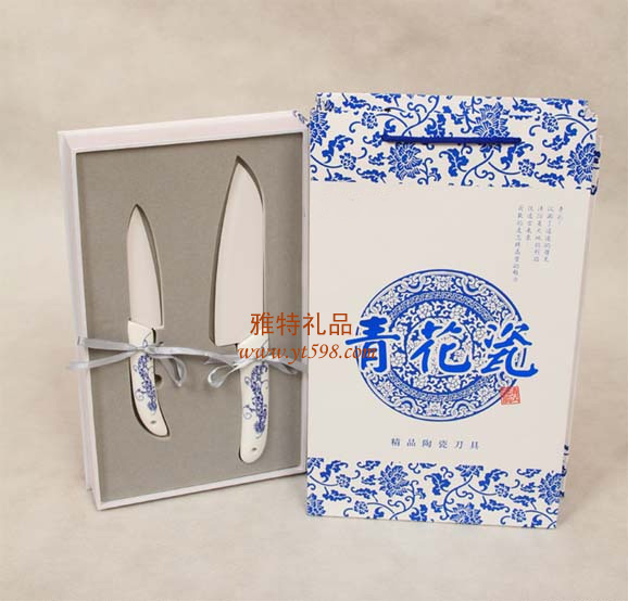 | 產(chǎn)品名稱:6.5寸青花陶瓷刀二件套 |