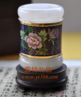 | 產(chǎn)品名稱:景泰藍(lán)白玉筆筒 |