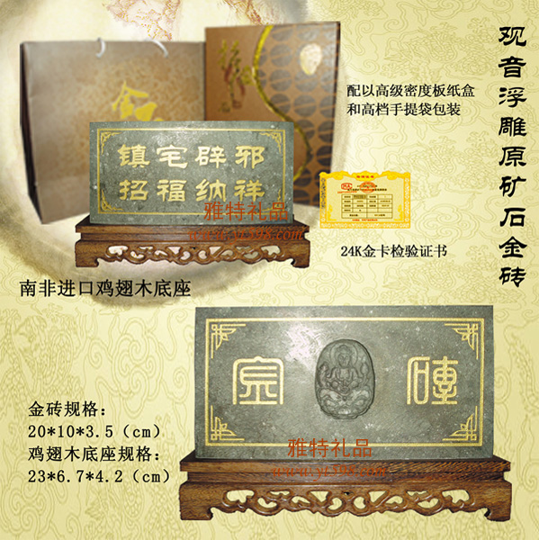 | 產(chǎn)品名稱:觀音浮雕原礦石金磚 |