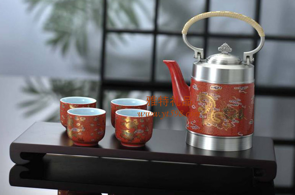 | 產(chǎn)品名稱:五彩云龍純錫紅瓷茶具六件套裝 |
