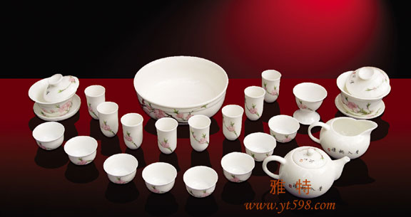 | 產(chǎn)品名稱(chēng):水點(diǎn)桃花茶具二十四件套 |