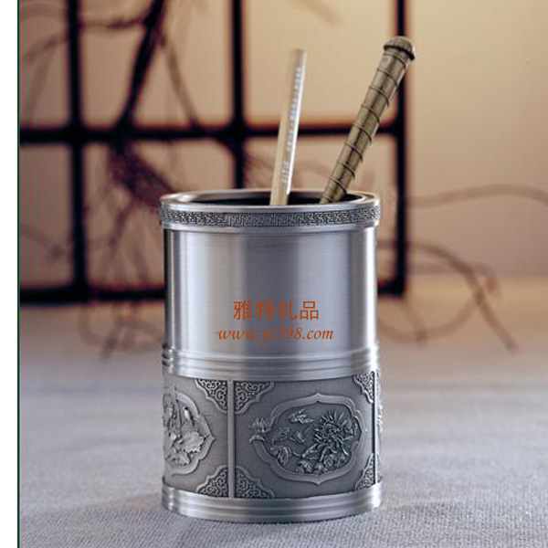| 產(chǎn)品名稱:花開富貴純錫筆筒 |