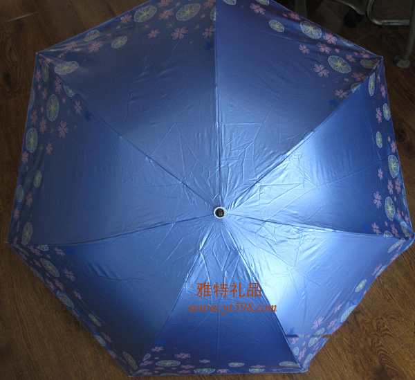 | 產(chǎn)品名稱(chēng):三折黑滌彩膠天堂傘 |