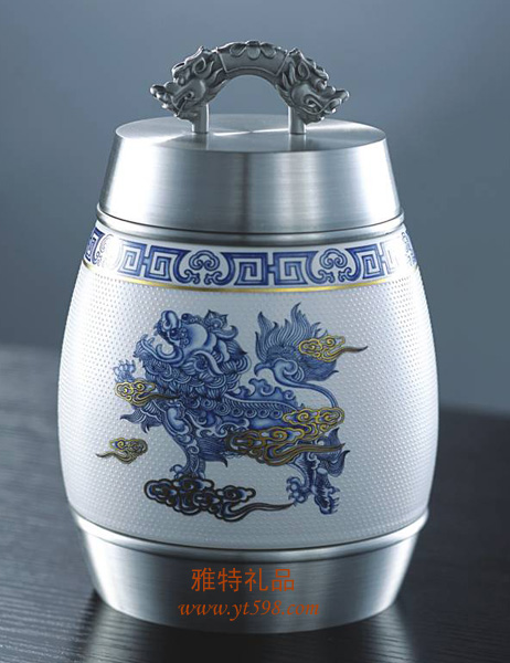 | 產(chǎn)品名稱(chēng):純錫釉點(diǎn)青花瓷茶葉罐 |