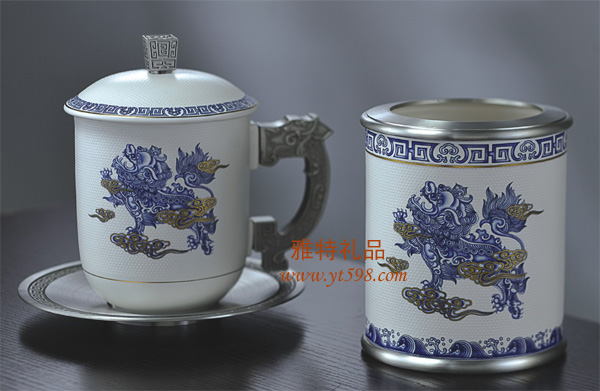 | 產(chǎn)品名稱:純錫青花瓷杯子筆筒二件套 |