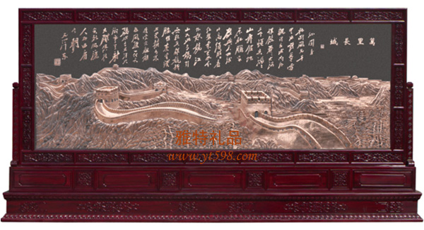 | 產(chǎn)品名稱:紅花梨木紫銅浮雕落地柜屏 |