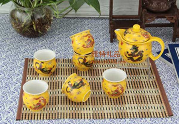 | 產(chǎn)品名稱:黃瓷雙層杯茶具七件套 |