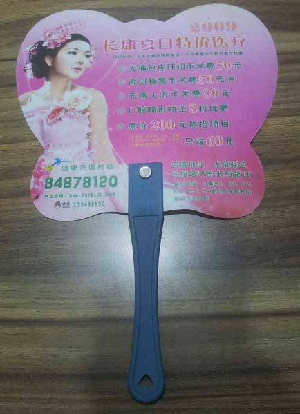 | 產(chǎn)品名稱:鉚釘中柄廣告扇 |