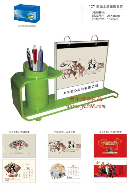 | 產(chǎn)品名稱:2015綠水晶相架臺(tái)歷 |