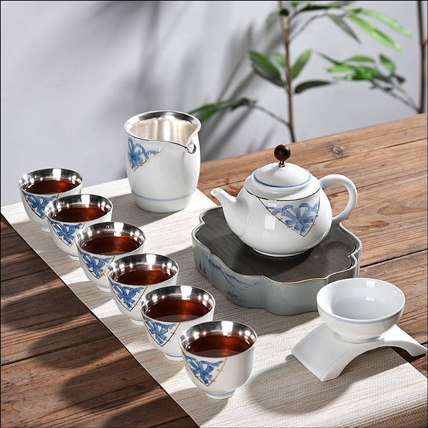 | 產(chǎn)品名稱:999鎏銀陶瓷茶具9件套 |